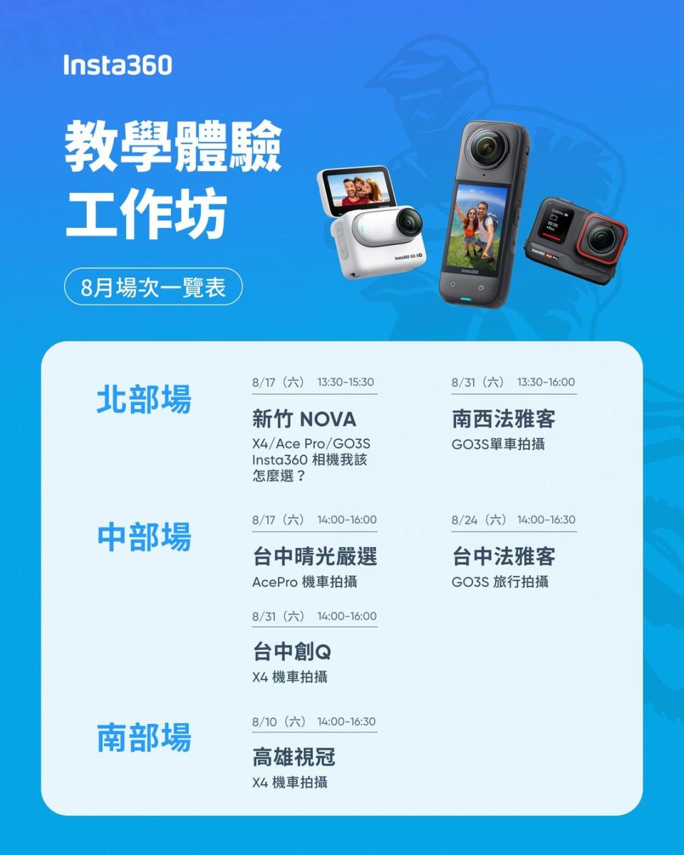 在北部的新竹Nova,我們熱情的 Insta360 Taiwan Club 社長 - Gary 林奇霆 將在全台最大Insta360玩家社團中,他看到了大家一直以來在Insta360攝影之路上的種種心得,而現在他將會在現場為你介紹究竟哪一款Insta360相機是最適合的選擇