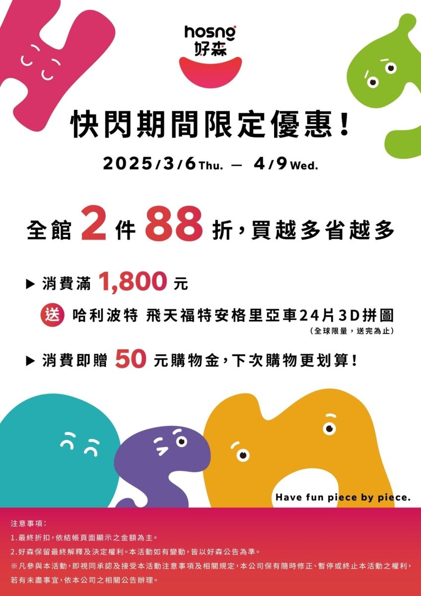 1. 拼圖控必搶! 2件 88折 !