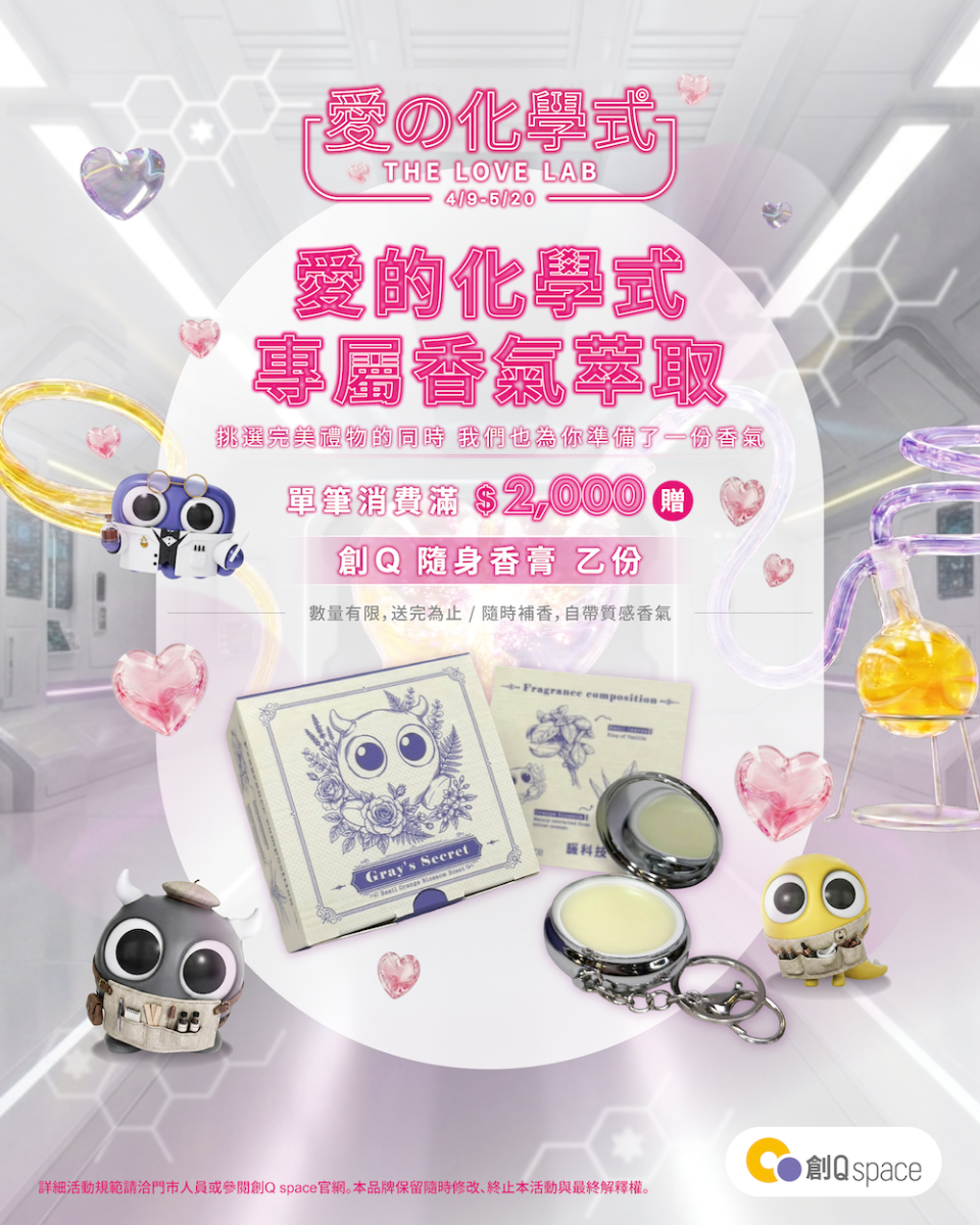 - 活動內容: 結帳單筆滿 $2,000,獨家加碼贈送【創Q 隨身香膏】