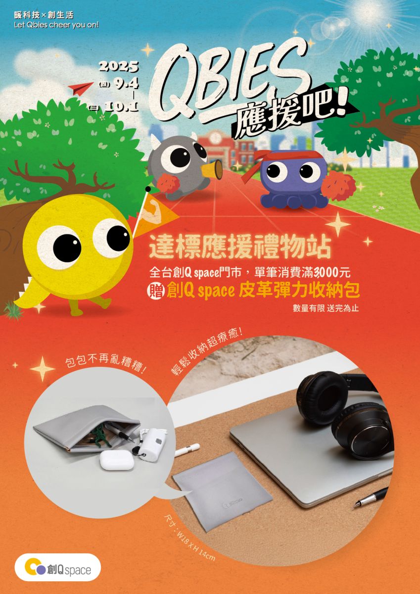 創Q space吉祥物 Qbies 聽到你的心聲,正式啟動【Qbies應援吧】活動企劃,用療癒力與實用力爆棚的小物為你強力補血,學生、上班族通通照顧到!