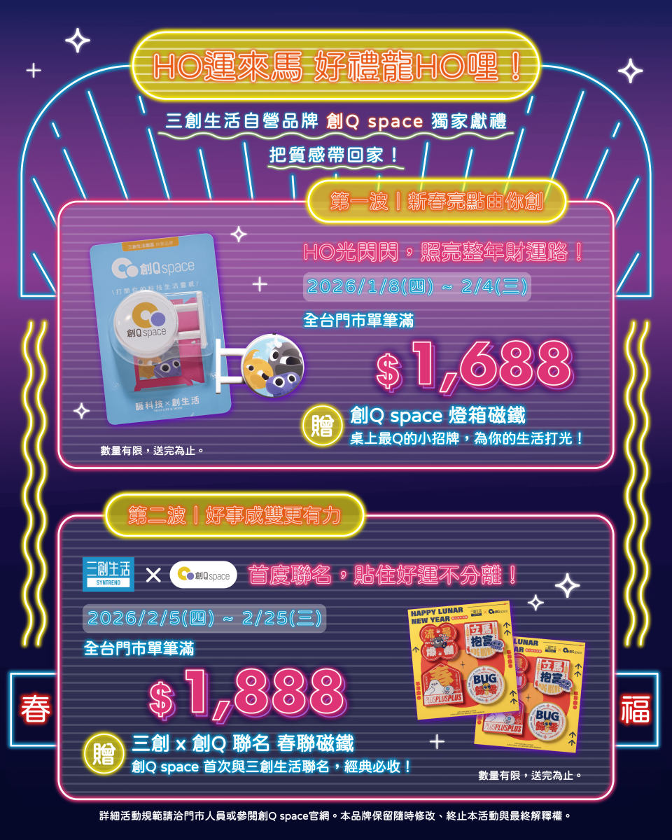 ★世紀大聯名! 三創生活與創Q space 首度攜手!將傳統春聯化為時尚霓虹磁鐵,貼住好運,全年閃耀!